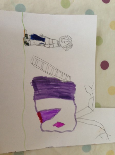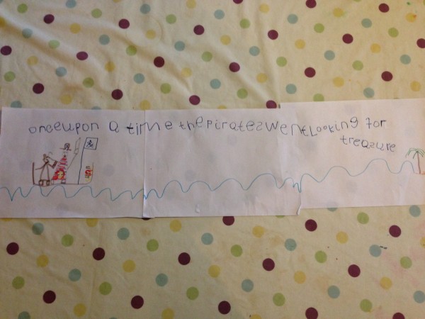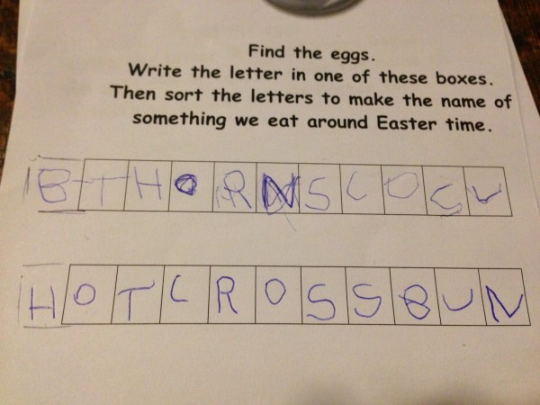 At the end of the afternoon, after a little bit of thank-you letter writing, we decided to draw some daffodils for our Spring display. This was a second attempt, after drawing some flowers last week which were beautiful but didn’t look like daffodils! This time, we looked carefully at the flowers, and discussed the shape of the petals and the trumpet before we started. There was some initial reluctance as it seemed quite challenging, but they soon got into it and decided it was fun after all. Tiddler did not want to be left out so I drew him a flower to colour. But then he asked me to do the yellow bit for him. And then the green bit. However, he did write his name. It is the yellow squiggle under the picture which you can see if you look really really closely!