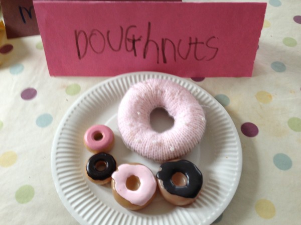 After snack time (some fruit arranged in a pretty pattern by Rabbit), we did some Maths together. The boys were working on their times tables, and I decided to set up an “invitation to play” with plasticine for Rabbit. I started making numbers, but had only made two when Tiddler came over and wanted to sit on my knee and “help” me. He enjoyed counting the numbers, starting at 1 again every time I made a new one, carefully pointing to each number in turn. He also self-corrected consistently, going back to the start when he made a mistake. I knew he could count to ten (at least) but wasn’t sure if he had mastered one-to-one correspondence yet. Well it looks like he has! While we were doing this, Rabbit came over to watch and I suggested she might like to make some numbers of her own. She worked very hard to make the numbers 1 to 4 and was very pleased with the results. She needed a little help to get the 3 to be the right shape, but did the others herself.