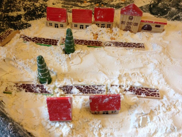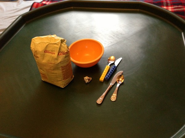After snack time (some fruit arranged in a pretty pattern by Rabbit), we did some Maths together. The boys were working on their times tables, and I decided to set up an “invitation to play” with plasticine for Rabbit. I started making numbers, but had only made two when Tiddler came over and wanted to sit on my knee and “help” me. He enjoyed counting the numbers, starting at 1 again every time I made a new one, carefully pointing to each number in turn. He also self-corrected consistently, going back to the start when he made a mistake. I knew he could count to ten (at least) but wasn’t sure if he had mastered one-to-one correspondence yet. Well it looks like he has! While we were doing this, Rabbit came over to watch and I suggested she might like to make some numbers of her own. She worked very hard to make the numbers 1 to 4 and was very pleased with the results. She needed a little help to get the 3 to be the right shape, but did the others herself.
