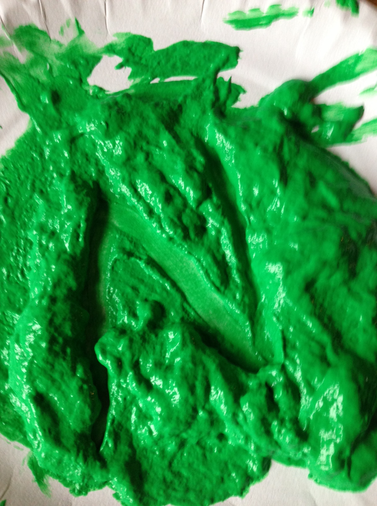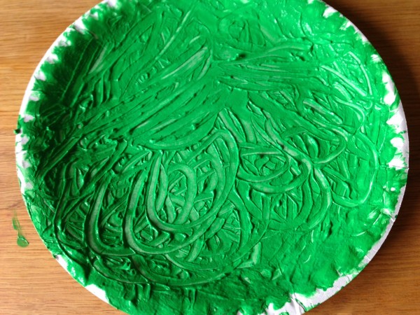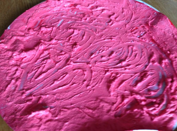 The night before last a conversation on twitter got me thinking about learning through play, and in particular messy play activities to support early reading and writing. So yesterday morning I decided that it was time to get the finger paint out, which I had bought a couple of weeks ago for this purpose. I scooped some red and green paint out onto paper plates and Monkey and Rabbit spread them around and started exploring the texture. Tiddler asked for white paint, so I found a black tray to give a more interesting contrast, but he asked for a paper plate so we transferred some of it onto one as well. Owl came and joined in and for a while all four of them were happily occupied with spreading, squidging and mark making. Then Owl extended the activity for the others by suggesting colour mixing, so we made brown and pink. After a while, I suggested they might like to write or draw in the paint, and they wrote several letters, and drew a bus, a train, a sun and some shapes.