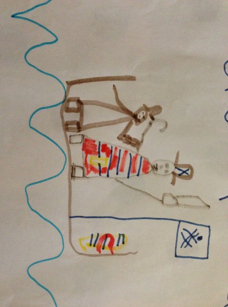 I set out some farm-themed books on the table to provide an alternative activity. I knew we had rather a lot of farm books, as it is something we all love, but even I was a little surprised at the size of our collection. In fact I think we probably have even more, as I only spent about 5 minutes looking and we have books in nearly every room of our house. It was fun to gather them all together anyway, and we will be using them for inspiration over the next few weeks. Monkey and Rabbit rediscovered some rather nice little stencil books and drew pictures of horses and farm animals. Rabbit also drew a rather lovely picture of a horse for one of her friends.