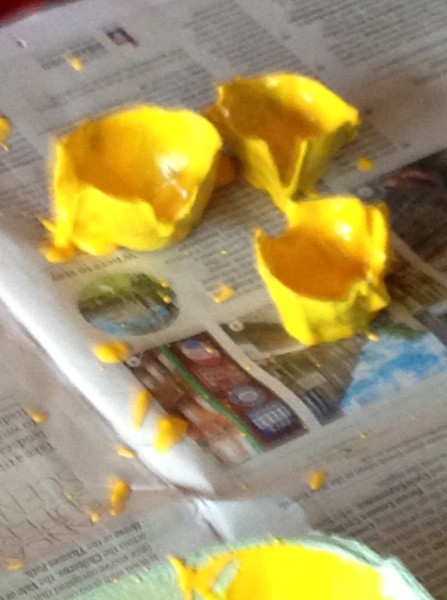 Today has been quite a hard day. Tiddler is not well, I think he has slapped cheek, and he has been needing lots of cuddles. This morning I had to take him and Rabbit to Granny’s house and then take the big boys to their piano lessons. We usually have a bit of table time first, but today I got the feeling that I would have to start getting ready straight after breakfast, allowing two hours to get everyone dressed and out. I was right! The combination of daydreaming and distraction from the big three and a very long tantrum from Tiddler – I don’t want a jumper and socks, I don’t want to go out – meant that it really did take all morning to leave the house. We walked to Granny’s house, which felt like a long way in the snow/sleet with Tiddler on my back, and then left the little two there and went on to the piano lesson. Afterwards, we went back to Granny’s house for lunch and the children watched Peppa Pig. Tiddler then reenacted his earlier tantrum for Granny to see – I don’t want to go, I want to stay here – for about half an hour, but eventually we got on our way. At home, we had hot chocolate and a snack, and then the children watched CBeebies and played while I recovered a bit. Some unauthorised painting occurred, resulting in rather a lot of mess, but it was quite peaceful.