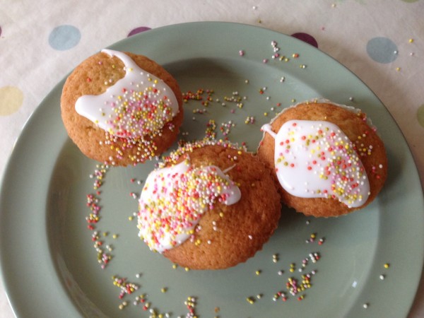 Rabbit and Tiddler iced fairy cakes with Granny.
