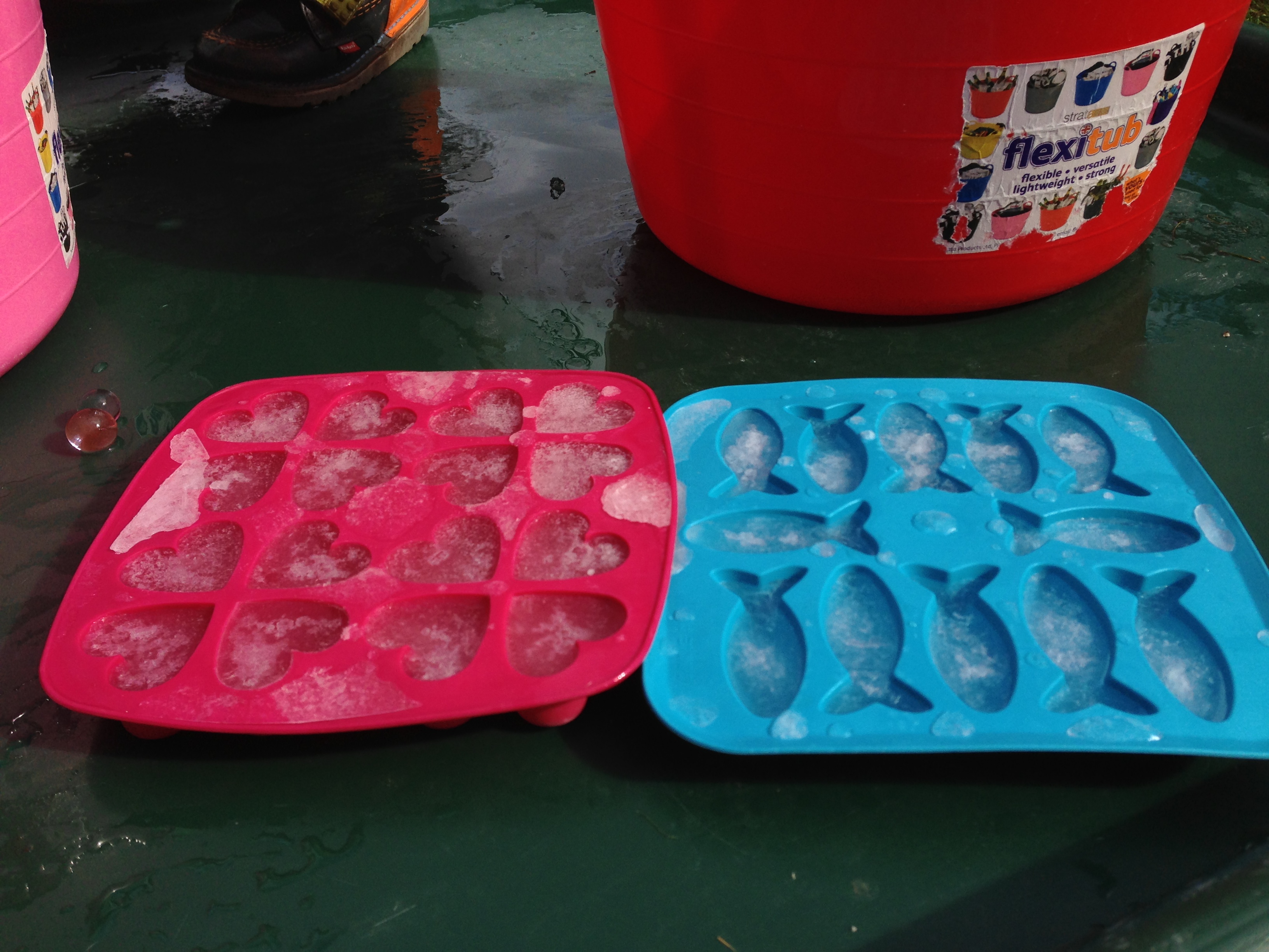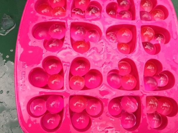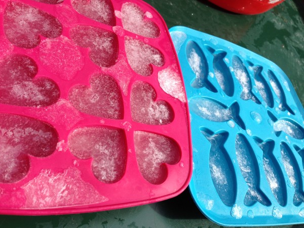 On Wednesday evening I read this post about an amazing mother’s creative plans for Valentine’s day play with her toddler twins, even while her heart is breaking for the loss of her baby daughter less than two weeks ago. If she can do it, then I have no excuse, so yesterday morning I made some ice cubes with red food colouring in the water, ready for some messy play in the afternoon. I couldn’t find my heart ice cube moulds, so it wasn’t quite as Valentine-themed as it might have been, but I don’t think the children minded having Hello Kitty, Lego and star ice cubes instead.